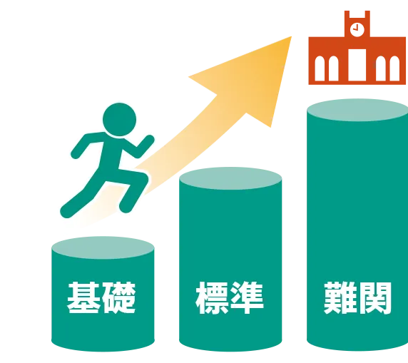 基礎・標準・難関で時間を区切り、現在の学力を正確に測ります。